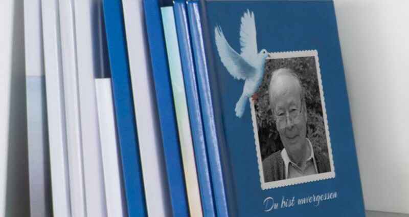 Sie finden verschiedene Designs und Formate zur Auswahl, können öffentliche Beiträge der Gedenkseite mit eigenen Bildern kombinieren und Alben einfach speichern, teilen, weiterbearbeiten.